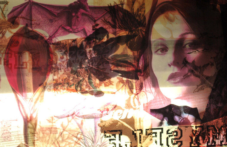 Kollagenikov // Papir, akryl, søm, snor og mixed media træplade